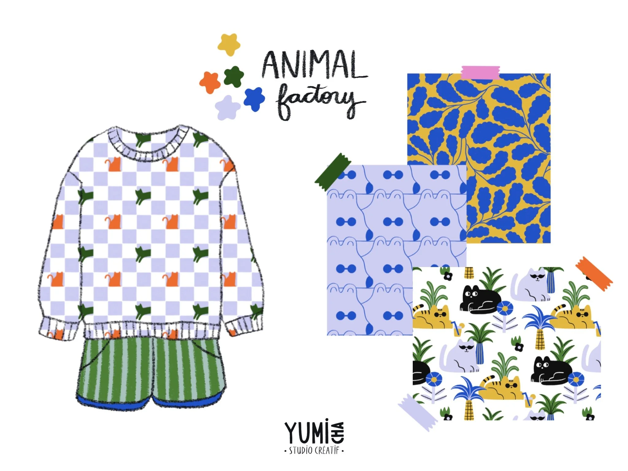 Je créé des illustrations et des motifs exclusifs, adaptables à tous types de supports dans les univers de la mode, de la décoration, de l’enfance ou encore de la papeterie et de l’édition.
